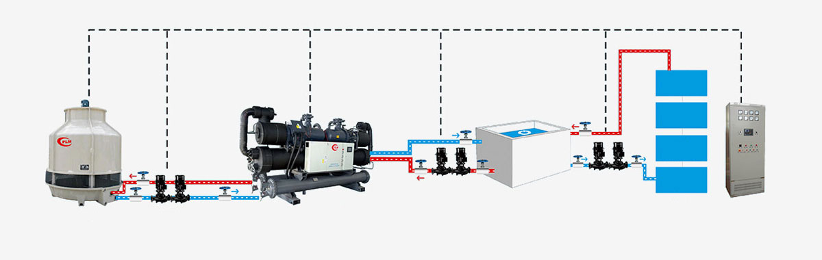 注:此流程中的制冷剂组可替换为“水冷螺杆低温冷水机组”等水冷系列的制冷机组。